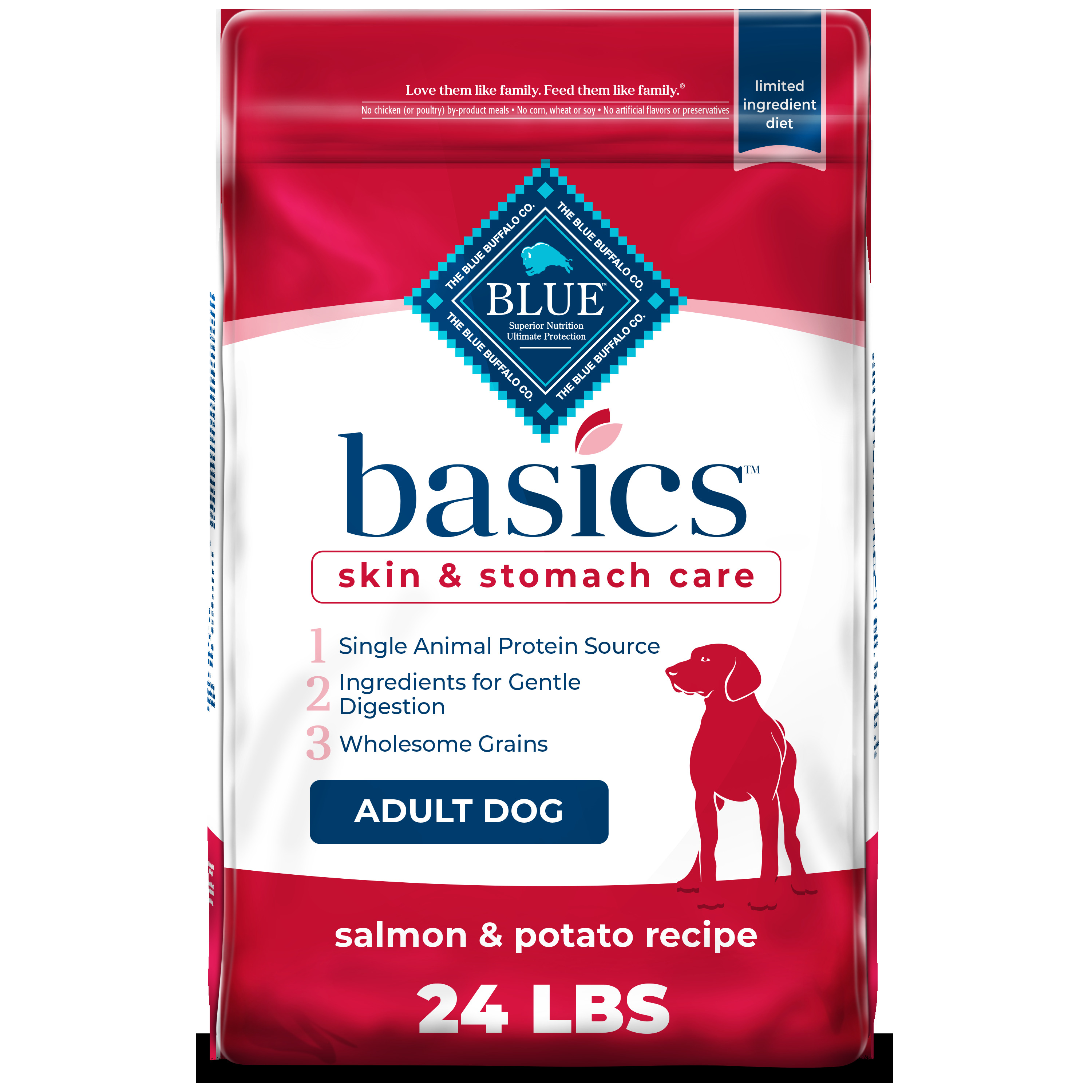Blue Buffalo Basics Skin Stomach Care Salmon And Potato Dry Dog Food For Adult Dogs Whole Grain 24 Lb Bag Walmart Com